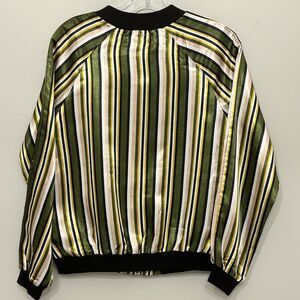 Truly 4 You Satin Jacket Womens Small Green Shiny Striped Bomber Retro