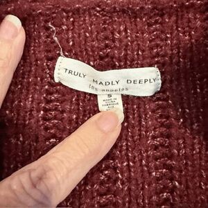 Truly Deeply Madly Ava Balloon Sleeve Open Front Cardigan Marled Burgundy Small. Oversized. Excellent condition. Chunky knit, stretchy ribbed knit. See photos for details and measurements. View my closet to add other items and bundle to save with one shipping fee!