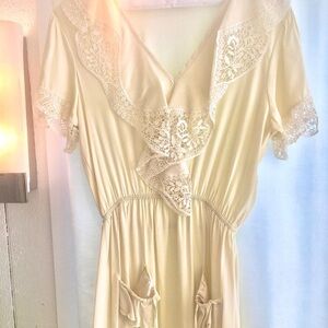 Stunning dress with lace details, worn once. Has two tiny charcoal spots that should wash out.