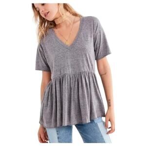 Truly Madly Deeply Heathered Gray Short Sleeve Cotton Blend Peplum Top Size S