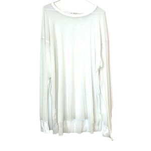 Truly Madly Deeply Sheer Mesh Fabric Long Sleeve Top White Large