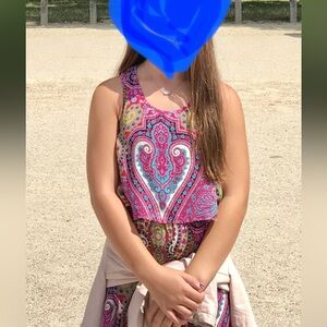 Truly Me Paisley Multicolor Tie Back Lined Romper, Girls Sz 12