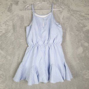 Truly Me Sara S Girls Romper Blue White Pinstripe Spaghetti Strap Ruffles 16 New