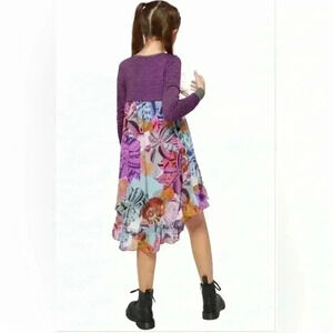 Truly Me Sara Sara Girls Floral Print Long Sleeve Chiffon Hi Low Dress 14 Purple