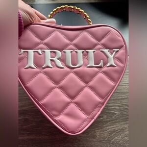 Carry your essentials in style with the Truly Pink Quilted Heart Bag. This chic accessory features a unique heart shape and a vibrant pink color, perfect for adding a pop of color to any outfit.