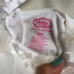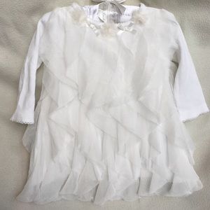 White long sleeve dress. Ruffled front, plain back. 3 buttons to the back. Used once. Excellent condition.