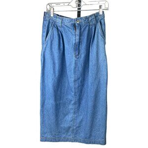 Truly Yours womens midi straight denim skirt with kick pleat size 4 pockets W28