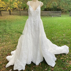 Truly Zac Posen v neck full lace ball gown basque waist size 10 fairytale