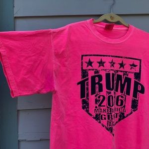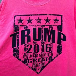 Trump 2016 Make America Great Again T shirt Comfort Colors by Chouinard...size Large cotton....pink bright preowned normal wear ..see measurements for correct fit 22" pit to pit and 29" center back length