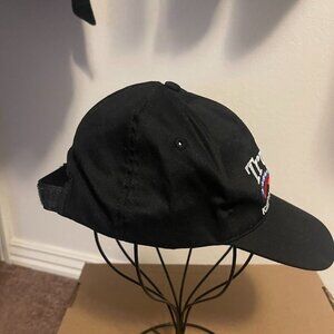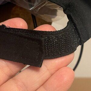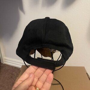 Back strap shows minor fraying. Top to bottom = 7 inches, brim length = 3 inches.