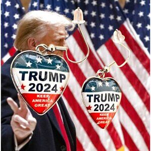Trump 2024 Earrings MAGA New Heart Shaped Dangle Hooks Patriotic Electi…
