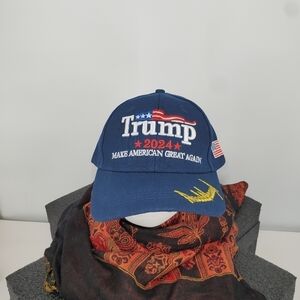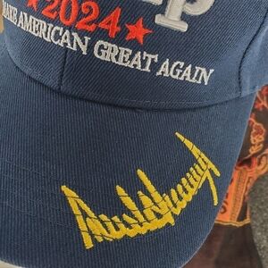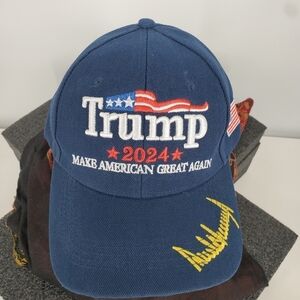Trump 2024 Embroidered Signature Make America Great Again Rope Cap Blue Hat NEW