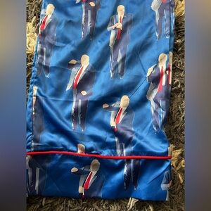 The Trump Dancing Long Sleeve Pajama Set is a lighthearted and fun design for those who love to add a bit of humor to their sleepwear. Featuring a playful graphic of Donald Trump dancing, this pajama set is both comfortable and amusing, making it a perfect choice for bedtime.