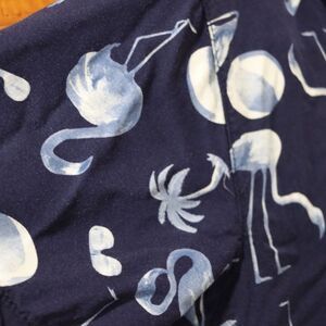 Trunks Medium Navy Blue Flamingo Print Button-Up Shirt | Resort Vacation Vibe