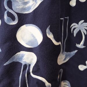 This Trunks button-up shirt is perfect for achieving a sophisticated resort, beach, or vacation vibe. The shirt features a classic collar and short sleeves, grounded in a deep navy blue base. The print is a unique, playful tropical pattern, but the muted white-toned flamingos, beach balls, and sunglasses keep the look stylish rather than loud. This shirt delivers a fun, relaxed style that’s ideal for summer events or cruise wear.