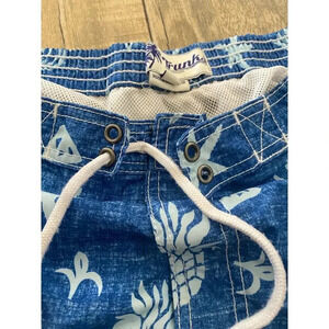Trunks Men's Blue Coral Reef Hawaiian Print Swim Trunks Shorts Size Large