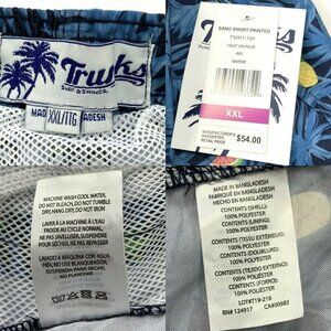 This Trunks men's Sano Short Swim Trunk will make a splash at the beach or pool side due to it's pull-on fit, elastic waist with tie, pockets and blue Fruit On The Palm Marine design