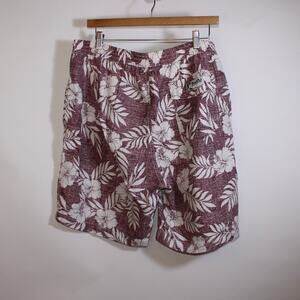 Trunks Surf & Swim Co Burgundy Red Swim Shorts With Tropical Print Size XL