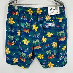Trunks Surf & Swim Co. Men's 6" Sano Swim Shorts sz L Tiki Picnic Blue NWT