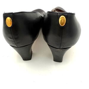 Trussardi Black Leather Pumps Made In Italy Block Heels Women's EU 38.5