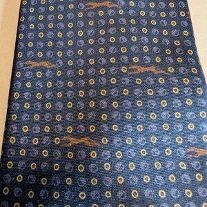 Trussardi Blue 100% Silk Tie with Poka Dots and Greyhounds Made in Italy