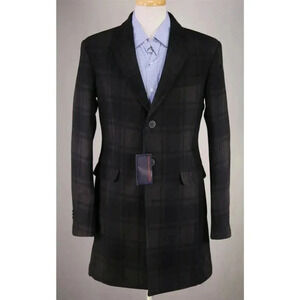Trussardi Brown/Black Check Wool Flannel 3-Btn Slim Fit Overcoat 38 New!