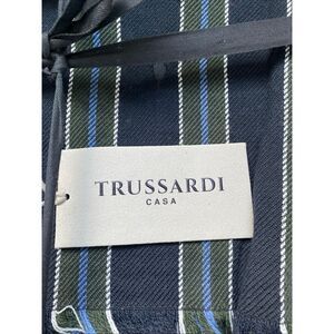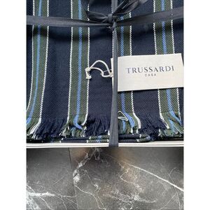 Trussardi Casa Throw Wool Blend Made In Italy 55x69" Blue,White & Green Stripes. 37% cotton, 32% wool, 31% acrylic. Brand new in box.