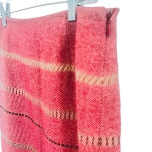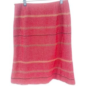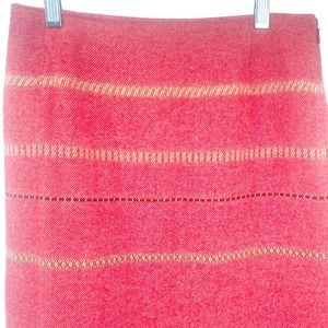 Gorgeous quality Italian made skirt with removable ruffle at hem. Wool feel. Red-orange with geometric stripes.
