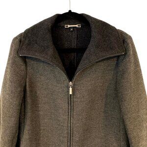 Trussardi S Longline Full Length Zip Gray Wool Coat Pockets Funnel Collar Y2K