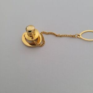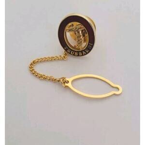 Trussardi Tie Pin Clasp Gold Red Tone Logo Designer Round Oval