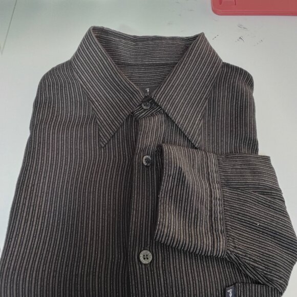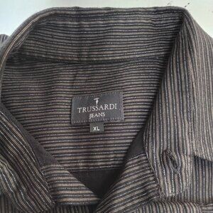 The shirt is size XL and features a striped pattern. Trussardi Jeans is known for its stylish and high-quality clothing, including shirts, jeans, and other apparel