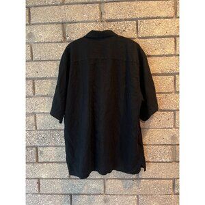 Trust Black Button-Up Shirt XL 55% Linen 45% Rayon Short Sleeve Casual With Pock