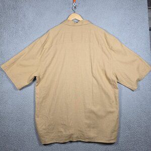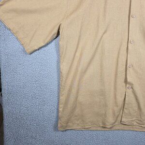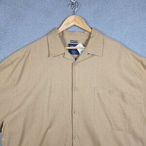 Trust Camp Shirt Mens Size 3X Beige Regular Open Collar Linen Rayon Blend NWT