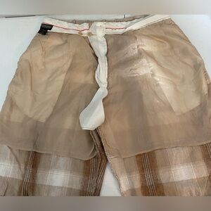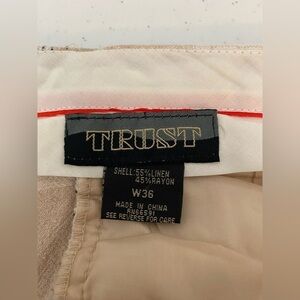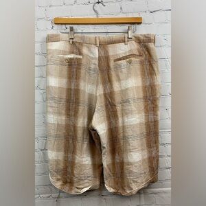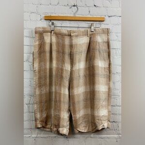 Trust Mens Size W36 Bermuda Linen Blend Vacation Shorts Tan/Beige Plaid