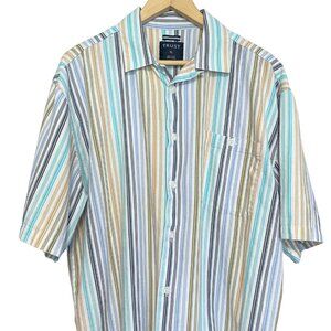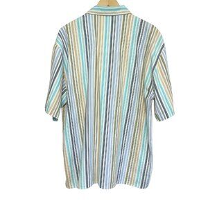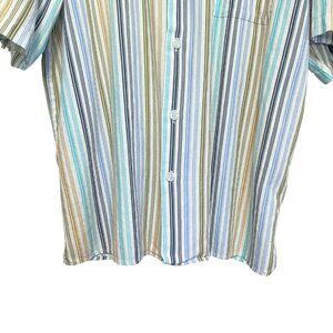 Trust Premium Linen Blend Button Up Shirt Mens XL Blue Striped Casual Preppy