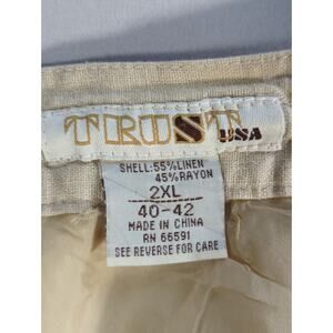 Trust USA Mens 2XL 40-42 Beige Linen Rayon Drawstring Shorts Casual Relaxed