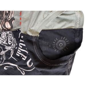 Trust The Universe Graphic Moto Split Black Teal Motorcycle T-shirt size M