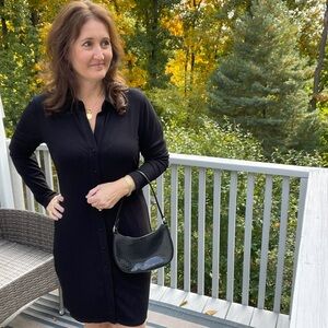 Truth Black Ribbed Button-Up DRESS