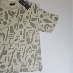 Truth By Republic T-shirt Mens Large Cream Grey Abstract Casual Designer Tee NEW