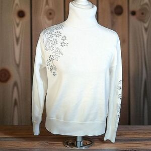 Truth By Republic White Turtleneck Rhinestone Embellished Cozy Soft Sweater Sz S