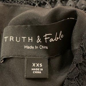 Truth & Fable Black Sheer Lace Long Sleeve Triangle Back Cut Out Dress XXS NWT
