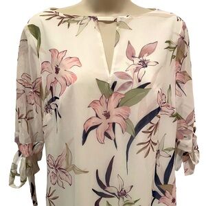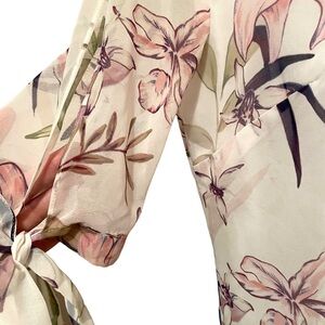 Truth & Fable White Floral Print Shift Dress with Sheer Tie Sleeves Size Small