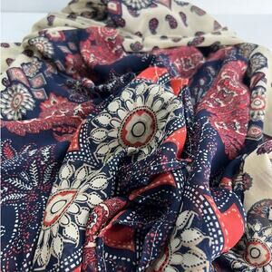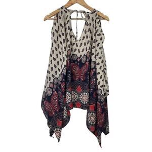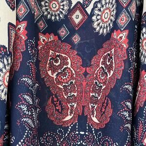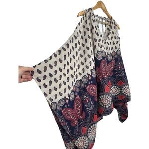 Truth NYC Navy/Red Floral BOXY BOHO Asymmetrical Sheer Blouse Large