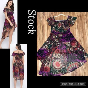 Truth NYC women’s shirt large top tunic Dark floral flowy black sheer stretch
