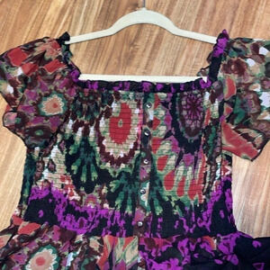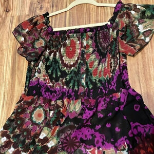 Truth NYC Dark floral flowy tunic top size L 12 14