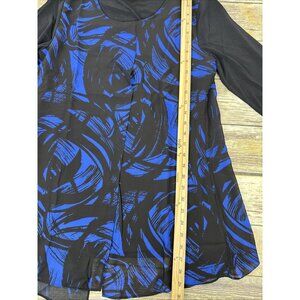 Truth Style Mix Media Printed Overlay 3/4 Sleeve Top Size S Cobalt Black A461101