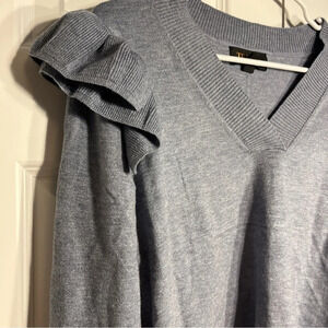 Truth by Republic Women Ruffle Shoulder Knit Sweater Blue V-Neck Size L