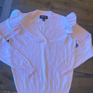 Truth by Republic pink ruffle shoulder v neck knit sweater small pink powder
