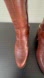 Brown leather foldable over the knee boots with gold hardware. Approximate Length from top 20 1/2 inches long if you wear it over the knee and 16.5 if you wear it knee high, 2 1/2 inches heels, also in excellent used good condition, some visible signs of wear on the bottom please see video and pictures. Shoes have been kept in a shoe closet stored with shoe shapers.