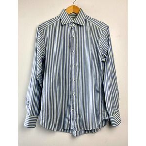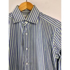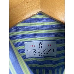 Truzzi Milano Shirt Blue Green Striped Italy Mens Size 15.5 / 39 Medium